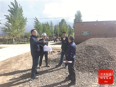 甘肃各级纪检监察机关聚焦农村危房改造领域,把整治形式主义、官僚主义作为监督检查的重点,为决战决胜脱贫攻坚提供坚强作风保障。图为金昌市纪委监委派出监督检查组到城关镇沙沟岔村拆旧建新现场了解有关情况。孙永红 摄