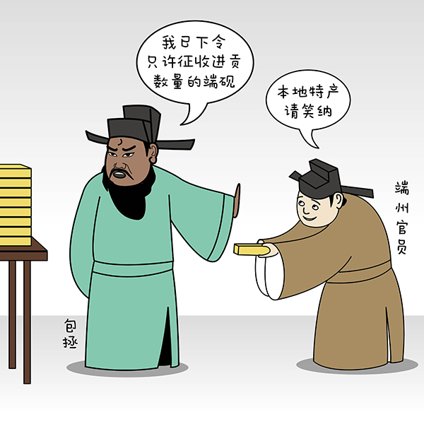 庆历元年(1041年),包拯南下岭南出任端州知府。端州自古以来以其端砚闻名于天下,为四大名砚之一,而当时端州官场潜规则很盛,以给朝廷进贡的名义征收数十倍的端砚来“孝敬”上级官员,以求来日上头有人好做官。包拯到来,一心只为减轻百姓负担,下令只许征收进贡数量的端砚,禁止多征一个,自断历来这条“升官捷径”机会。包拯以身作则,任职3年,两袖清风,“岁满不持一砚归”。在1973年肥东的包公墓的清理挖掘中,只发现普通的砚台,没有端砚,这也证明了包拯的“清心为治本,直道是身谋”。(北京大学历史系博士 左金彪 | 绘图 张寒)