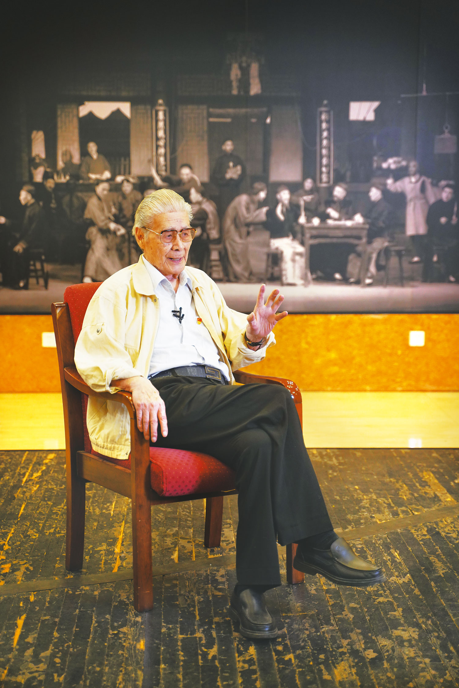 此后,蓝天野便再也没有离开过这方舞台:85岁,参演北京人艺原创剧目《甲子园》;90岁,执导北京人艺原创剧目《大讼师》;93岁,连续登台11场参演话剧《家》;94岁,再次担任历史大戏《吴王金戈越王剑》的导演……
